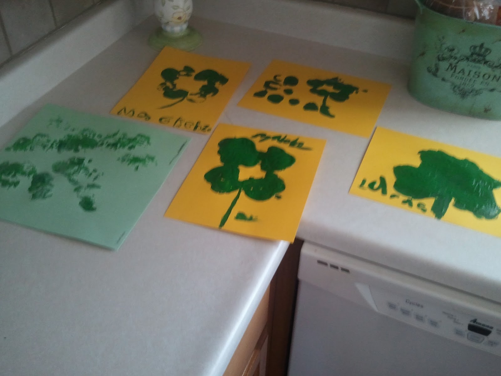 Ok Valentines is over, moving right along into St Patrick's day!! Easter is the end of March so I feel like St Patty's gets jipped. Which really is a shame because it has so many cute fun crafts that go along with it. So here we are Feb.15 gettin our green on!! :)